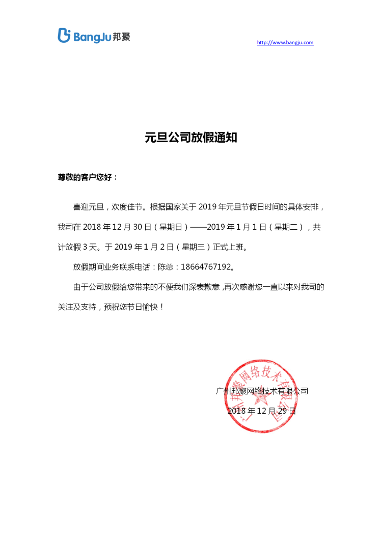 元旦公司放假通知