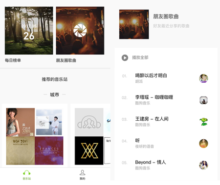 1.結合微信朋友圈的大數據,朋友圈歌曲這個功能正好體現出來