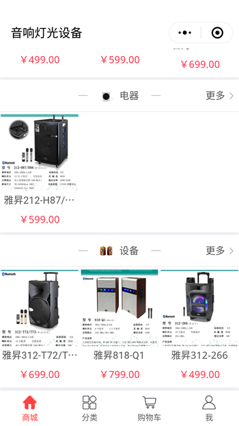 音響設(shè)備小程序主要產(chǎn)品包括:專業(yè)功放、調(diào)音臺(tái)、周邊設(shè)備、音箱等系列產(chǎn)品;音響設(shè)備小程序里的產(chǎn)品都會(huì)經(jīng)過嚴(yán)格的檢測,保證設(shè)備質(zhì)量好且音質(zhì)完美,喚視聽享受,視覺與聽覺的雙重享受。音響設(shè)備小程序同時(shí)會(huì)收集發(fā)布行業(yè)最新、實(shí)用性高的信息;如何選購音響設(shè)備?如果根據(jù)會(huì)議現(xiàn)場租賃適合的設(shè)備?如何對(duì)設(shè)備進(jìn)行調(diào)試?燈光怎么做能夠營造出想要的氣氛?這些問題都可以在音響設(shè)備小程序都可以得到用戶想要的答案。