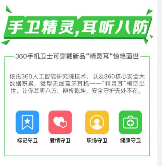 360手機(jī)衛(wèi)士團(tuán)隊(duì)還秘密研發(fā)了一款終結(jié)“職場(chǎng)賤人”的神秘可穿戴設(shè)備——-360“精靈耳”,防豬隊(duì)友、防呆板、防填坑等等。